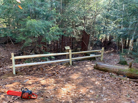 In 2005, Chamberlain Homes purchased the Aube's property, and as part of an agreement with Saco City, donated 14 acres around the falls to create a public park. Since then, the park has seen continuous improvements. The Trout Pond Loop was built in 2011, followed in 2014 by the construction of the Ledge Trail by volunteers from the Saco-Biddeford Rotary Club. Finally, in February 2023, a permanent bridge was installed by Saco Parks & Recreation, allowing visitors year-round access to explore the park's full beauty.